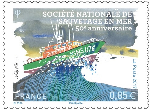La Poste émet un timbre à l’occasion du 50ème anniversaire de la Société Nationale de Sauvetage en Mer.