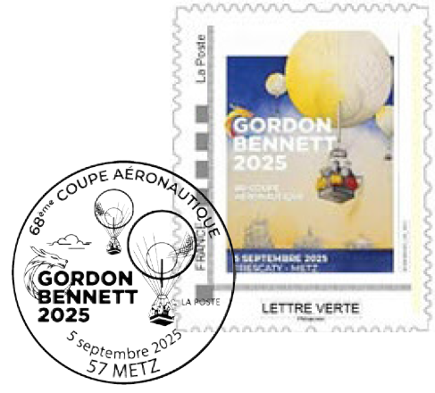 A l’occasion de la 68° coupe Aéronautique Gordon Bennett qui se déroulera le 5 septembre 2025 sur le plateau de Frescaty, l’Amicale Philatélique de Metz a conçu une Carte Postale et un Timbre à Moi. NB : le Bureau sur place sera présent de 16h00 à 22h00 !