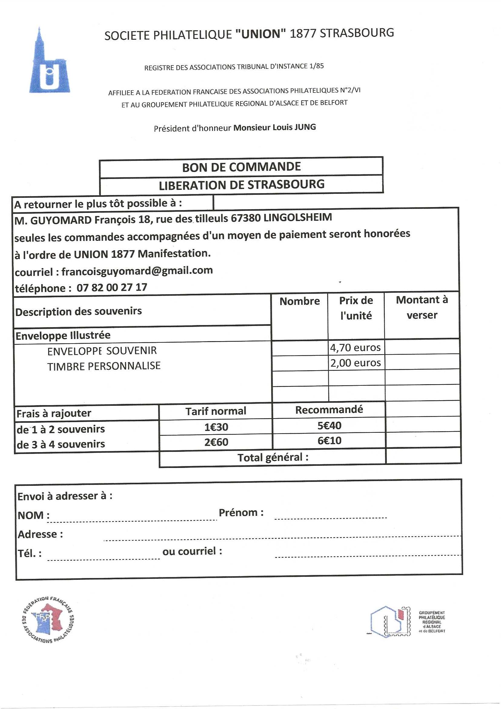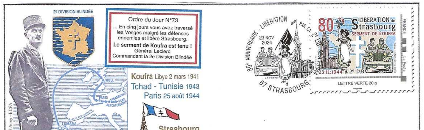 La Société Philatélique Union 1877 Strasbourg va célébrer le 80ème anniversaire de la Libération de Strasbourg par la 2ème DB du Général Leclerc, en partenariat avec nos amis d’HISTORIAPHIL.