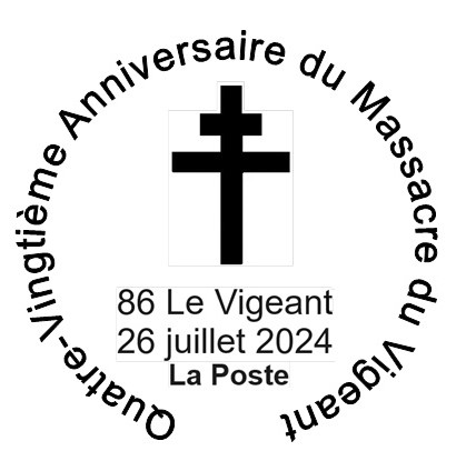 Bureau temporaire organisé par PHILAPOSTEL Poitou-Charentes pour commémorer les 80 ans du massacre par les allemands de 42 personnes à Le Vigeant (86)