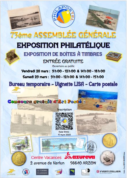 La 73ème Assemblée Générale de PHILAPOSTEL se déroule à Arzon-Kerjouanno (Morbihan) du 27 au 30 mars 2025.