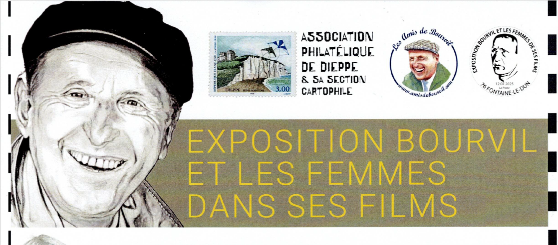 Après l’immense succès le 23 septembre 2020 de l’émission d’un timbre personnalisé BOURVIL 1917-1970 50 ANS DÉJÀ !, l’association Les Amis de Bourvil et l’Association Philatélique de Dieppe se sont à nouveau rapprochés pour illustrer par des produits philatéliques inédits l’exposition « BOURVIL ET LES FEMMES DE SES FILMS » qui se tiendra à Fontaine-le-Dun du samedi 12 au dimanche 20 juillet 2025.