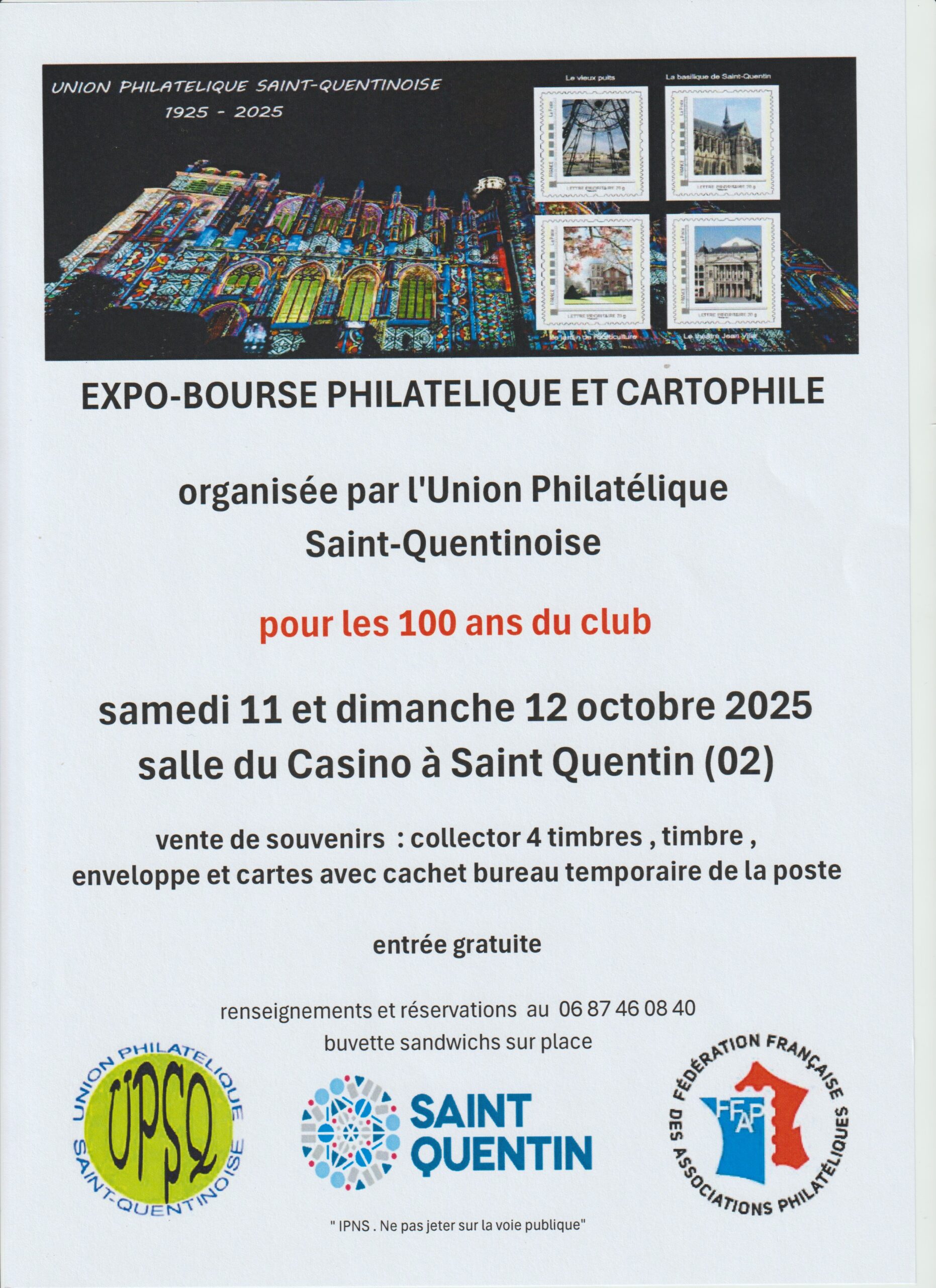 Organisée par l’ Union Philatélique Saint-Quentinoise pour le centenaire de l’association