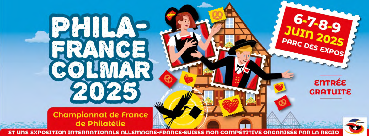 Le prochain Championnat de France de philatélie aura lieu du 6 au 9 juin 2025 au Parc des Expositions de Colmar, C’est dans ce cadre que notre 98e Congrès national fédéral se déroulera sur ce site le dimanche 8 juin 2025 au matin. Vous serez informés ultérieurement des modalités pratiques de cet événement.