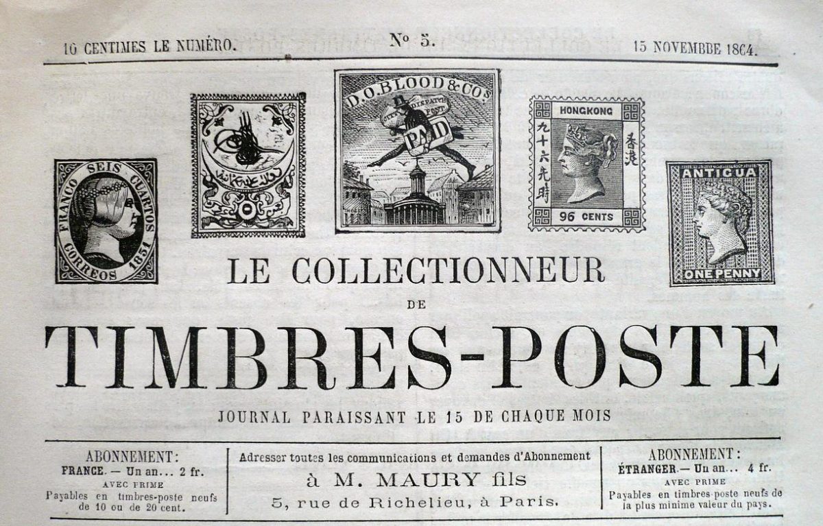 Le mot « philatélie » est apparu pour la première fois en 1864 dans un article non signé d’un des premiers périodiques consacrés à la nouvelle passion de collectionner les timbres-poste : le « Collectionneur de Timbre-poste » édité par Arthur Maury.