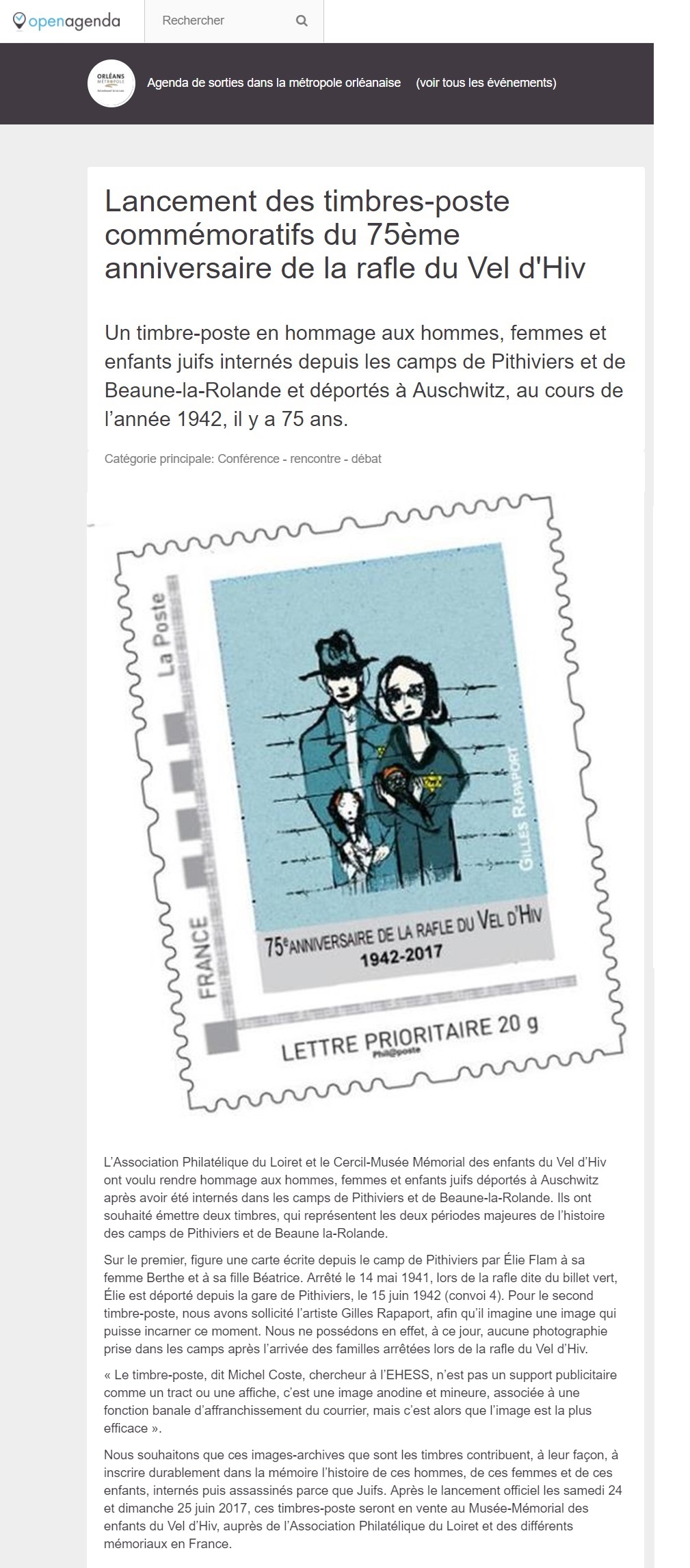 Lancement des timbres-poste commémoratifs du 75ème anniversaire de la rafle du Vel d’Hiv