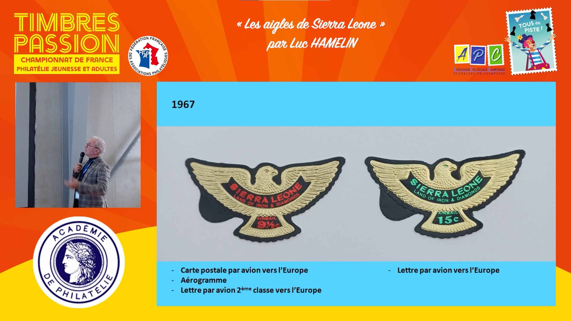 Découvrez un extrait de la conférence « Les aigles de Sierra Leone » par Luc HAMELIN proposée aux visiteurs de Timbres Passion 2024 à Châlons en Champagne et captée pour vous être maintenant proposée gratuitement.