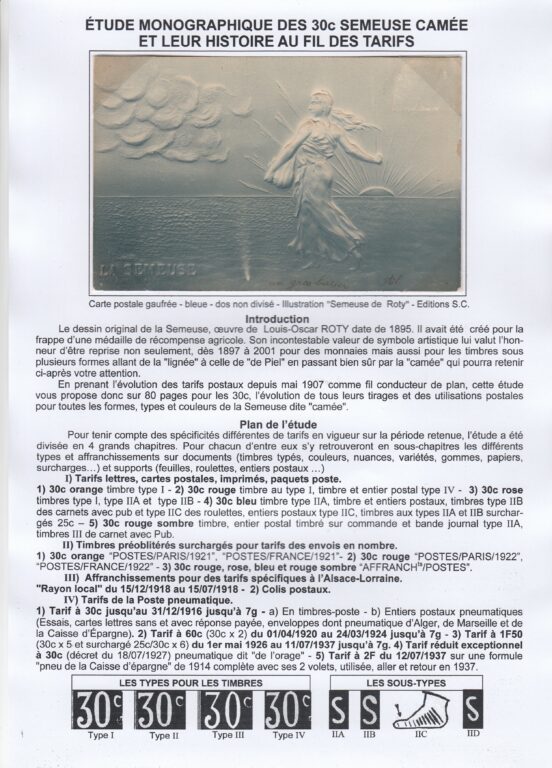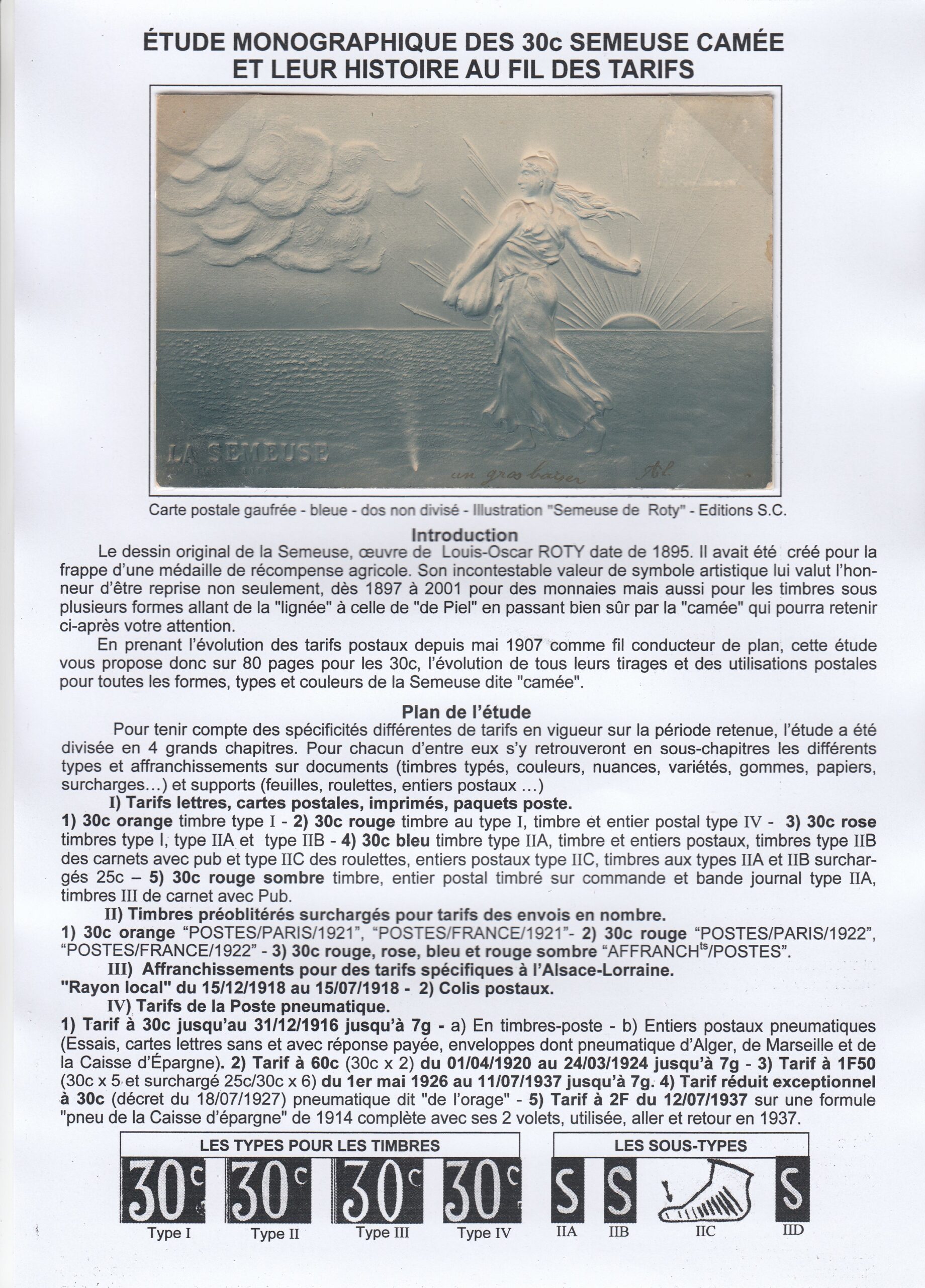 Etude monographique des 30c Semeuse camée métropolitains et leur histoire au fil des tarifs
