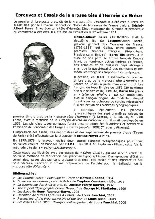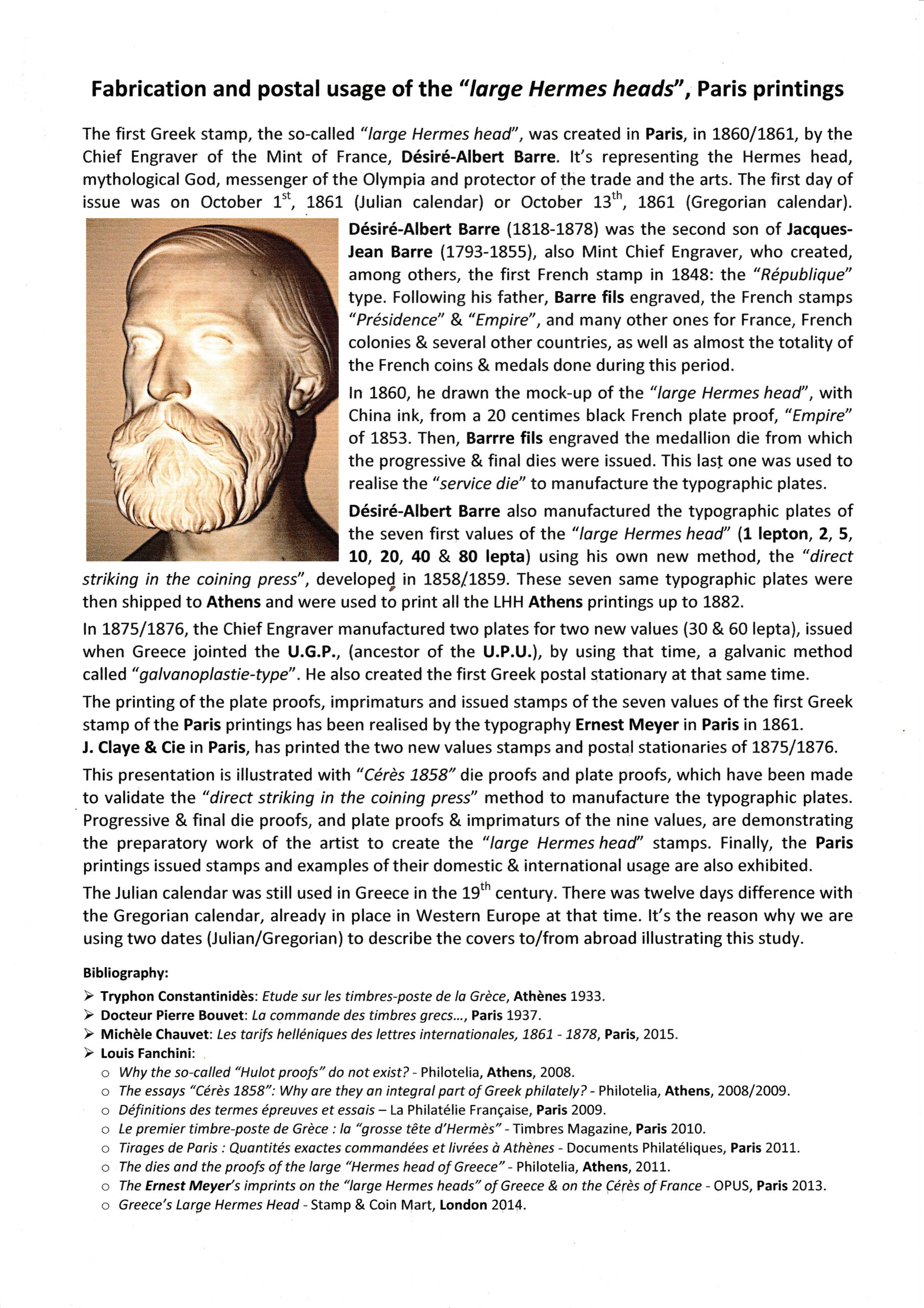 La fabrication et l’utilisation postale des tirages de Paris de la grosse tête d’Hermès de Grèce’