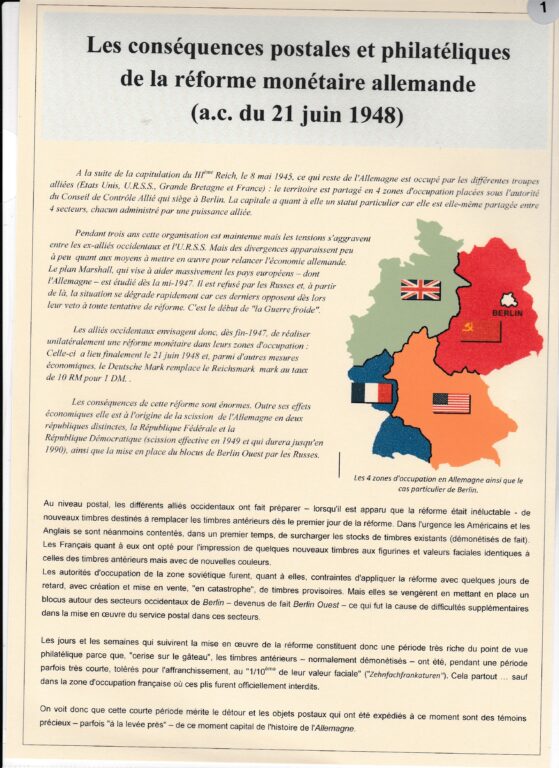 Les conséquences postales de la réforme monétaire de 1948 en Allemagne