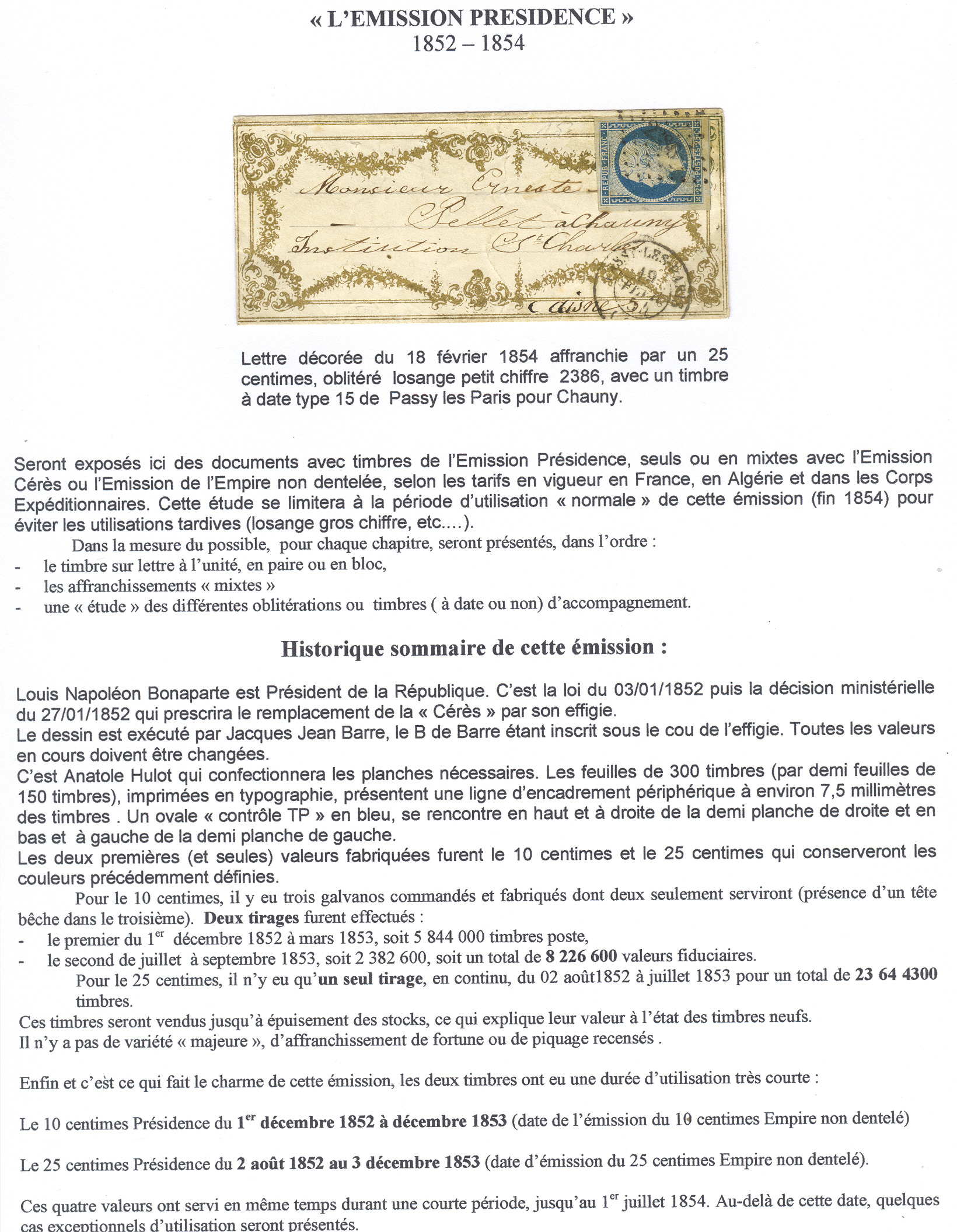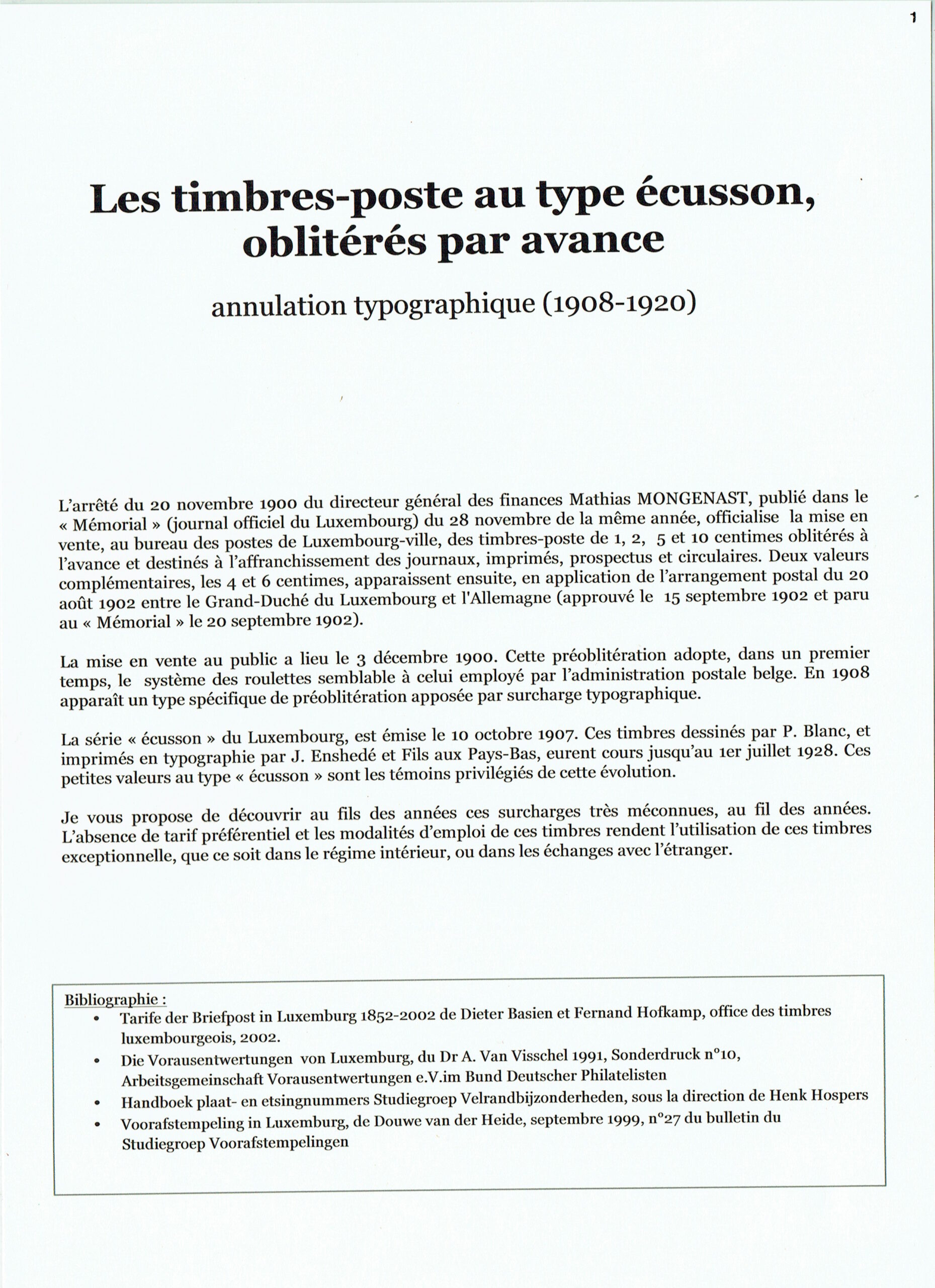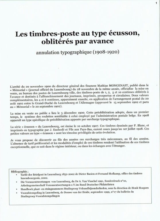 Les timbres-poste au type ’Ecusson’ oblitérés par avance