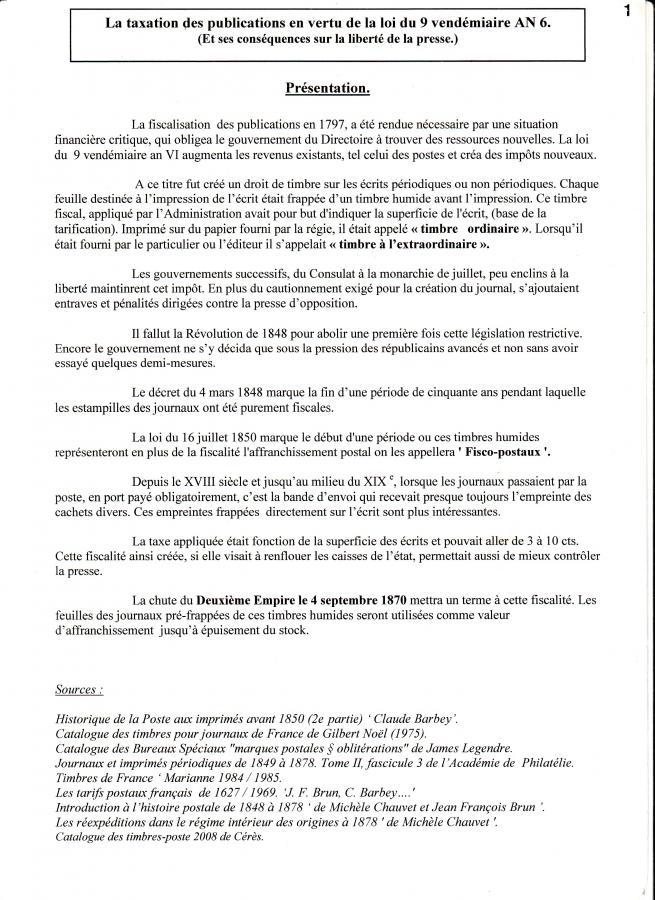 La taxation des publications en vertu de la loi du 9 vendémiaire an VI (30 septembre 1797)