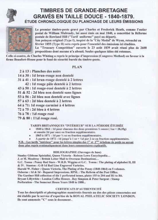 Timbres de Grande Bretagne en taille douce 1840-1879. Etude chronologique du planchage de leurs émissions