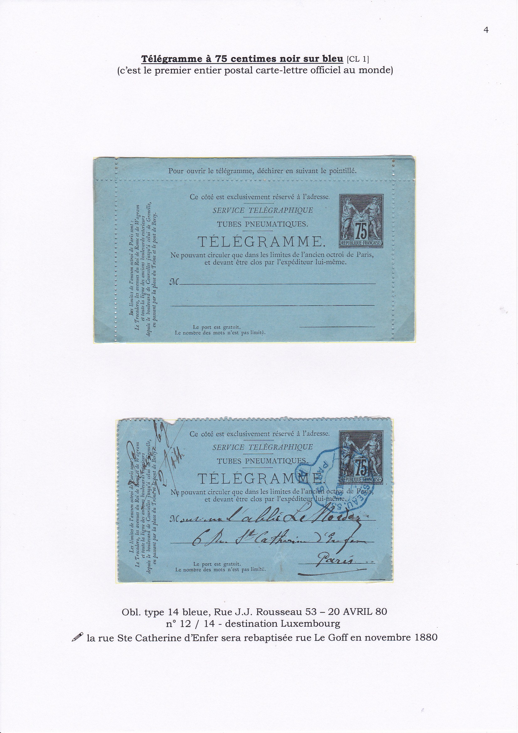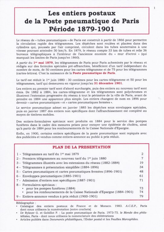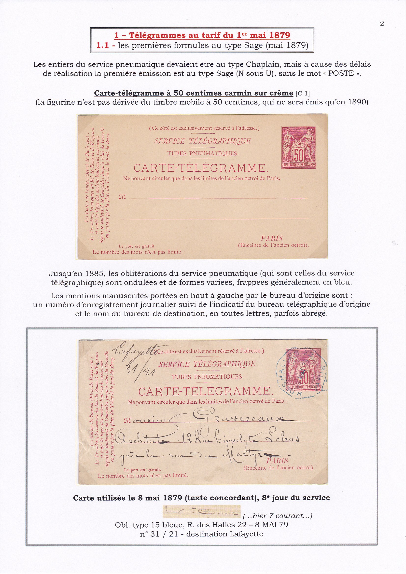Les entiers de la poste pneumatique de Paris – Période 1879-1901