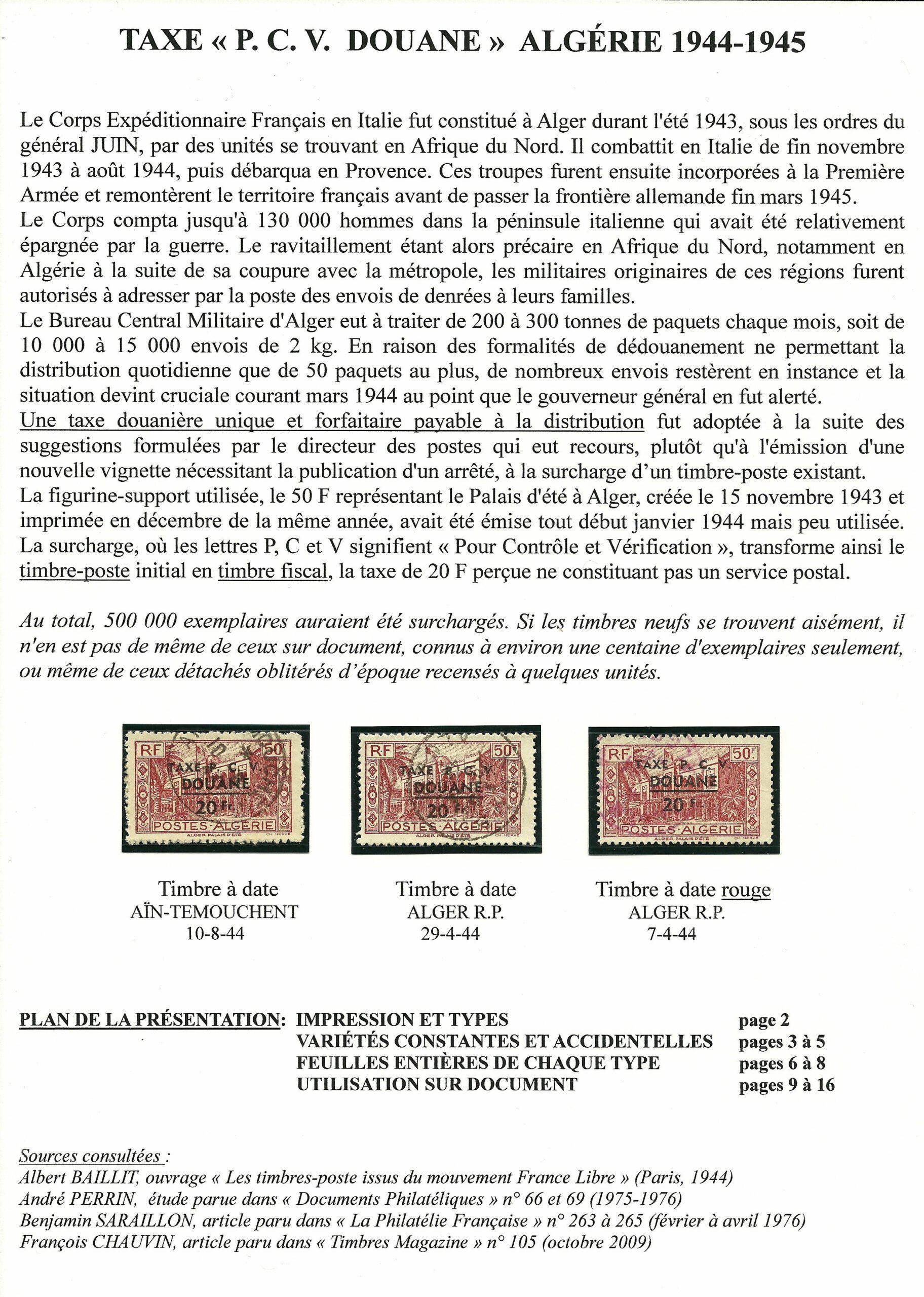 Taxe ’P.C.V Douane’ Algérie (1944 / 1945)