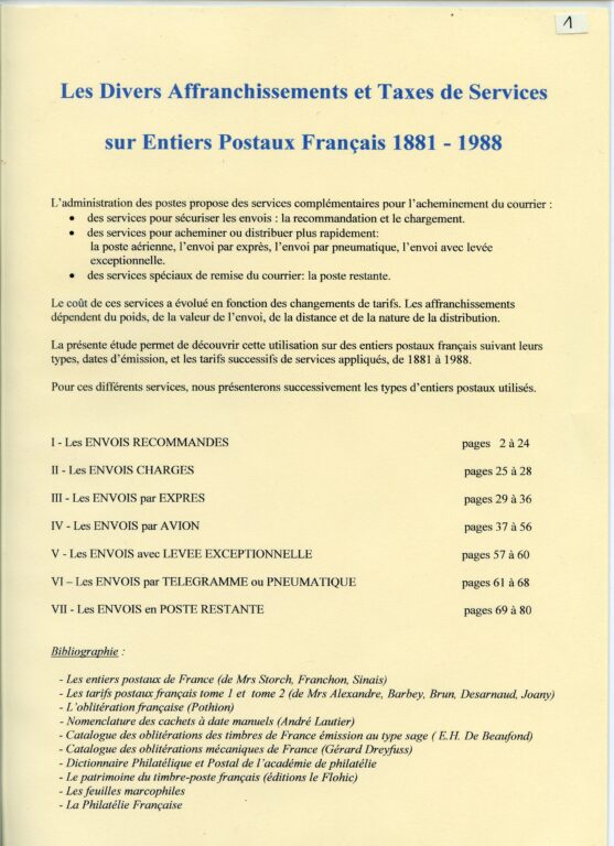 Les divers affranchissements et taxes de services sur entiers postaux français (1881 – 1988)