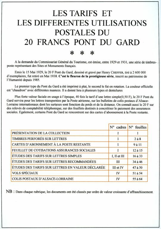 Les tarifs et les différentes utilisations postales du 20 F. Pont du Gard