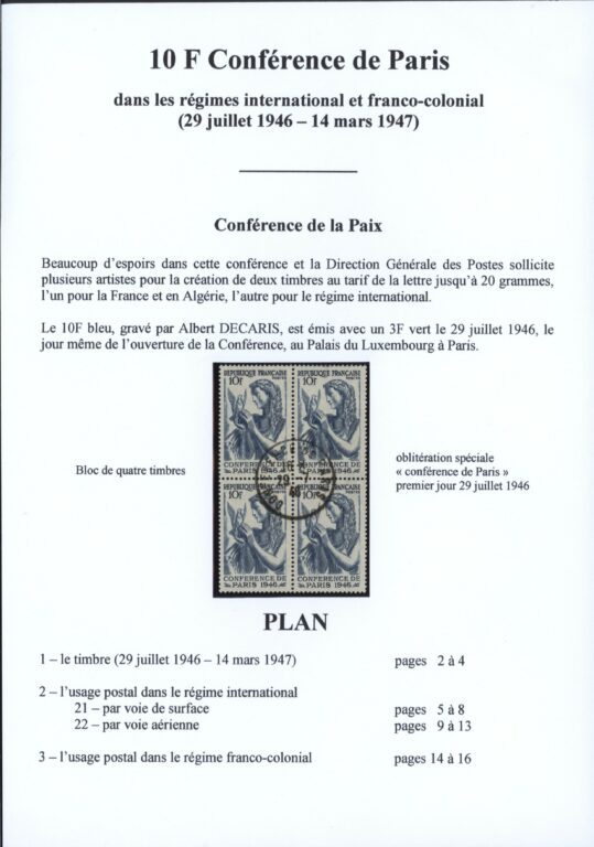 Le 10 F ’Conférence de Paris’ dans les régimes international et franco-colonial