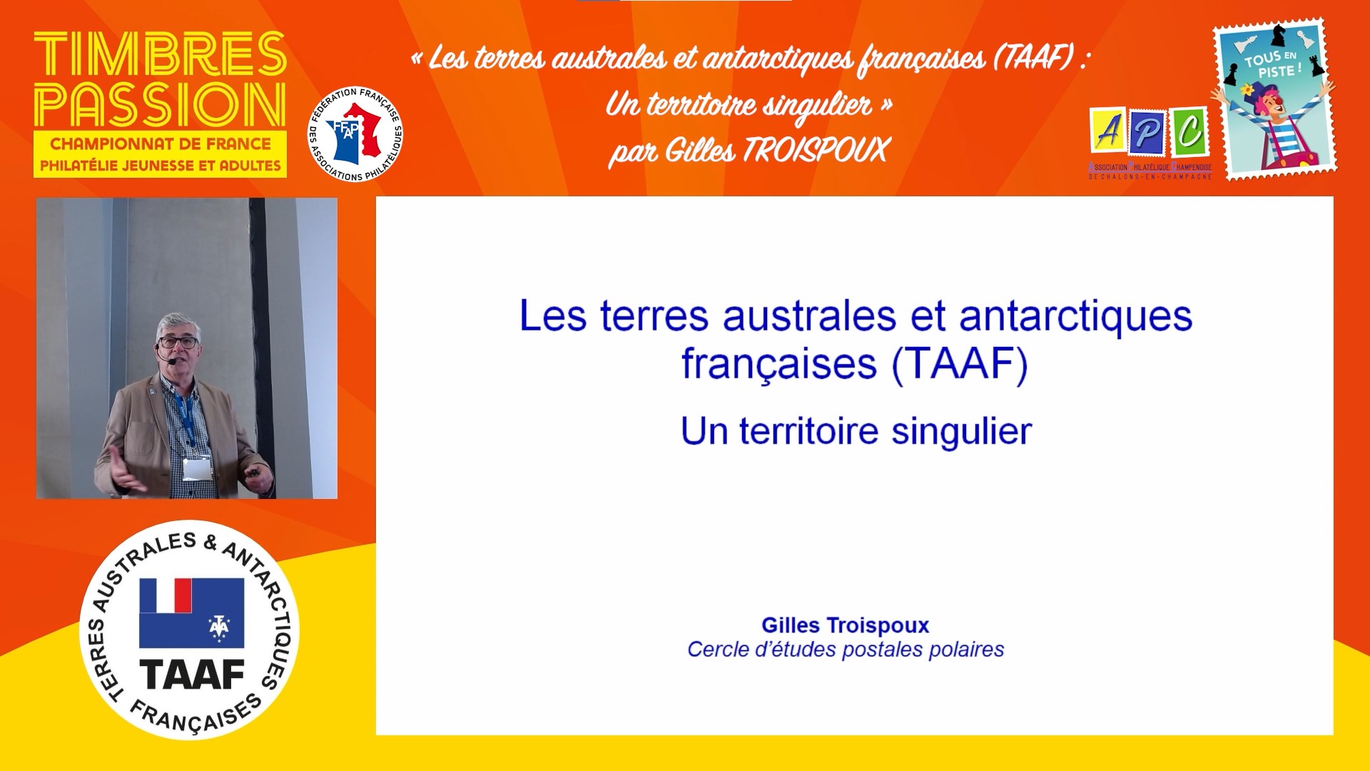 Découvrez un extrait de la conférence « Les TAAF : Un territoire singulier » par Gilles TROISPOUX proposée aux visiteurs de Timbres Passion 2024 à Châlons en Champagne et captée pour vous être maintenant proposée gratuitement.