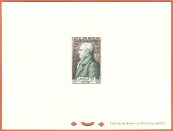 Epreuve utilisée par l’imprimeur pour indiquer la présentation définitive d’un projet de timbre-poste avant son impression effective. Pour lire la suite, veuillez vous connecter